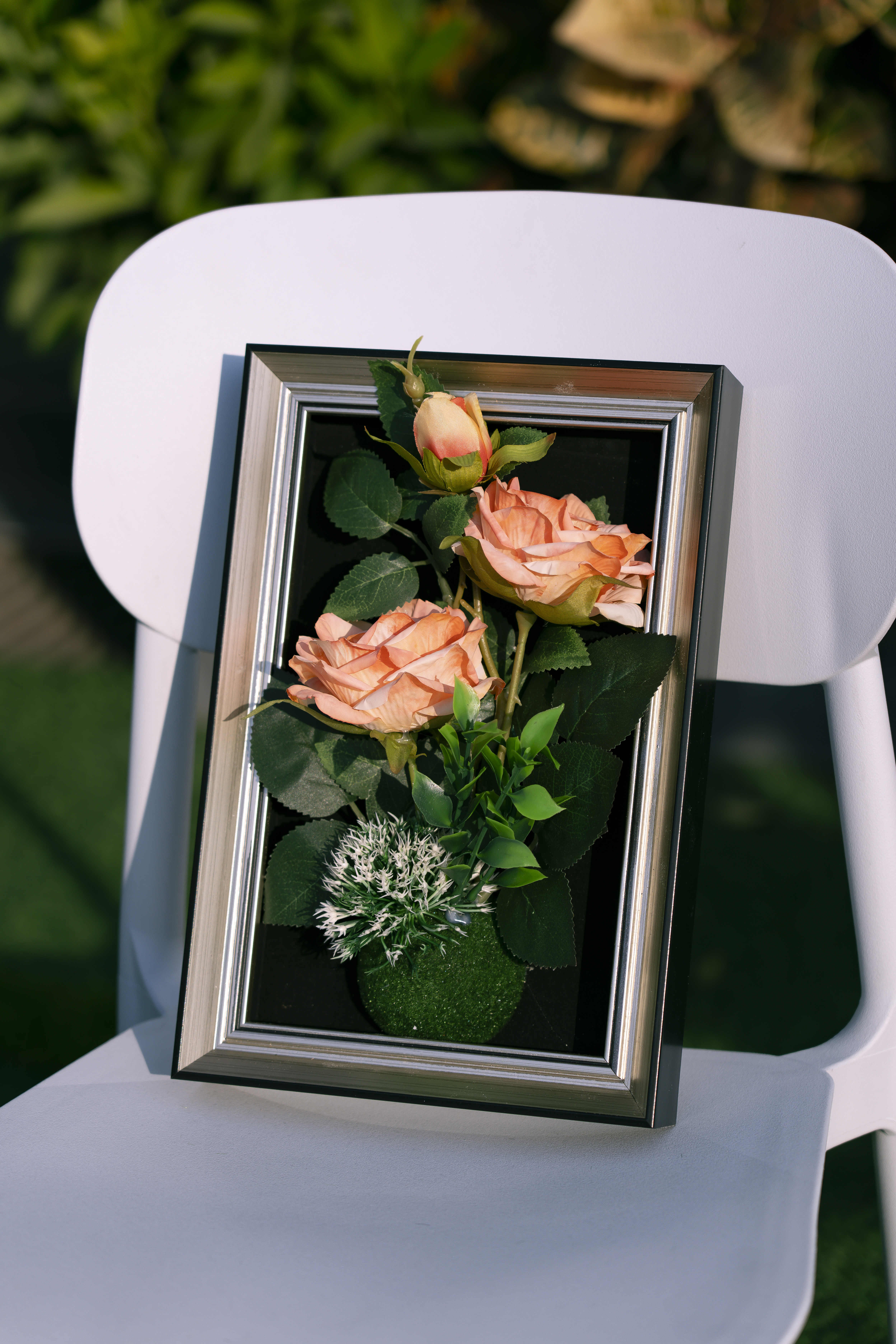 Artificial Pink Rose Framed Floral Art | Realistic Faux Rose Shadow Box Decor, 7.8*11.8 in