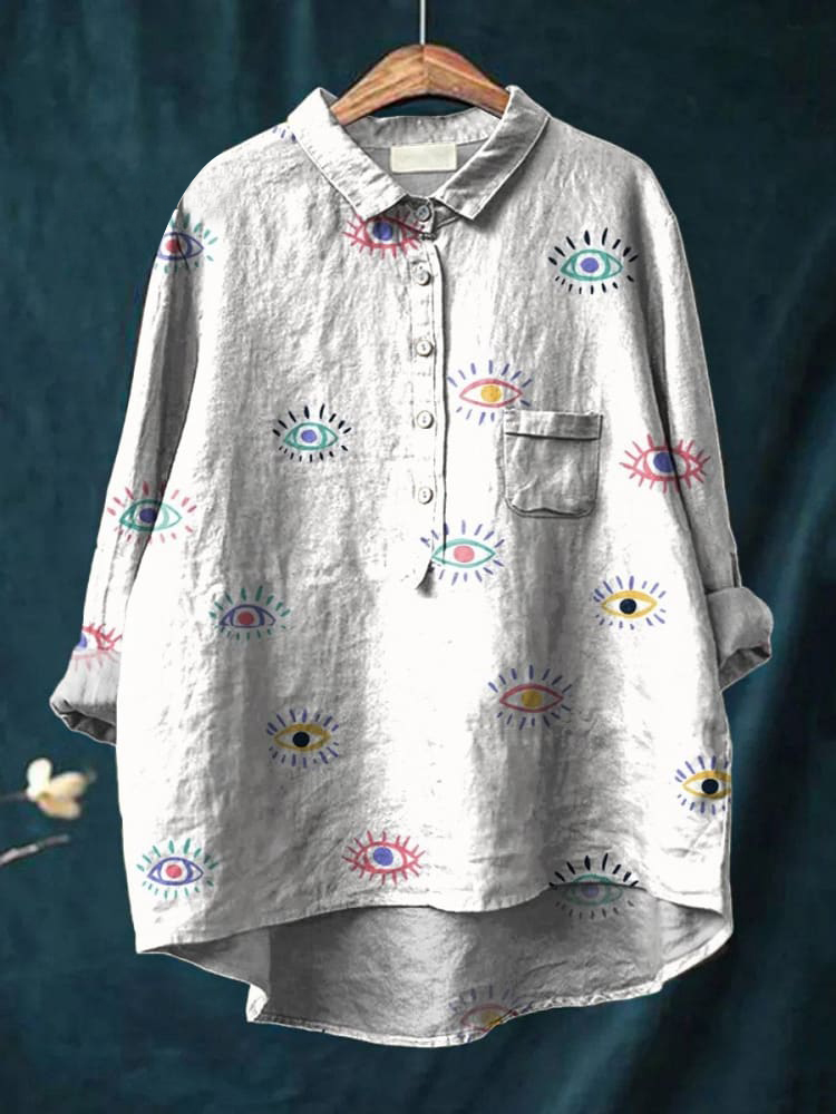 Colorful Simple Spiritual Eyes Decorative Pattern Casual Cotton And Linen Shirt