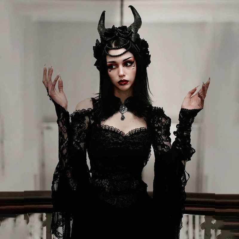 Gothic Lace Princess Sleeve Slim Fit Shoulder Vest Top