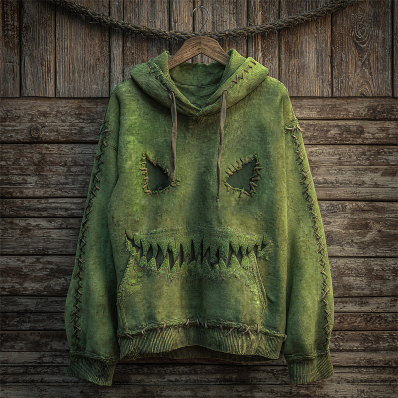 Halloween Spooky Monster Face Stitched Washed Hoodie