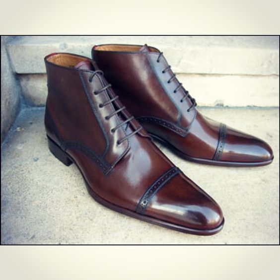 Handmade dark brown leather dress boots for men's, Men brown ankle boots