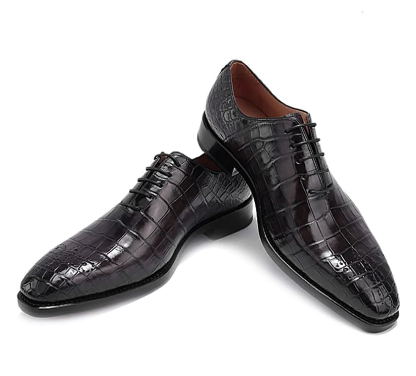 Handmade Men Alligators Shoes, Black Crocodile texture oxford Shoes for Men