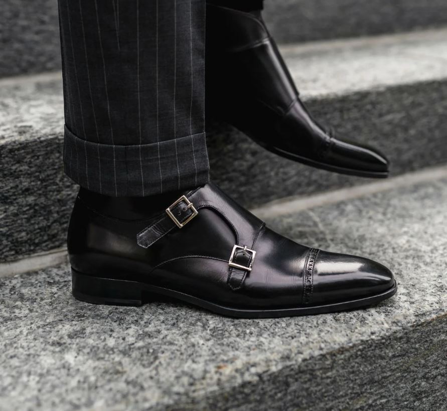 Handmade Men black monk shoes, Men black Leather Oxford shoes