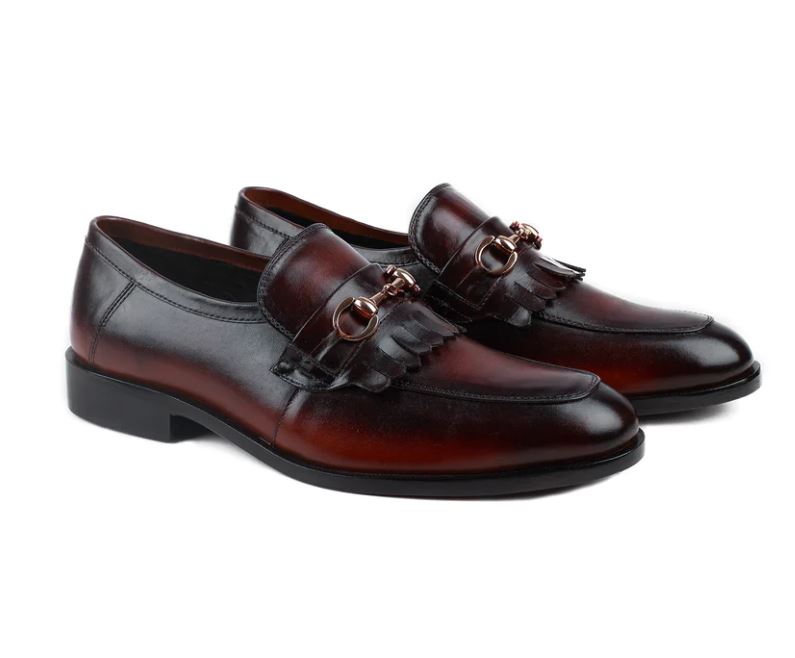Handmade Men Burgundy Leather fringe dress shoes, Men leather Penny loafer