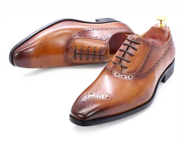 Handmade Men Tan brown dress shoes, Men brown leather brogue formal shoes