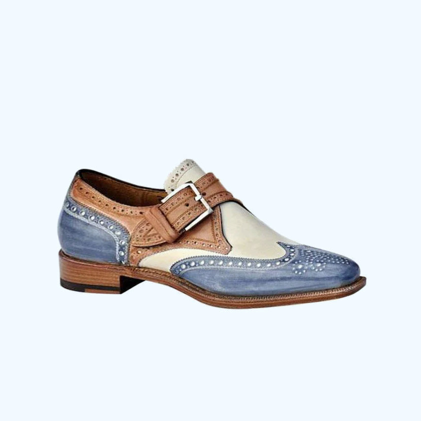 Handmade Men Three Tone Wing Tip Brogue Shoes, Designer Formal Shoes