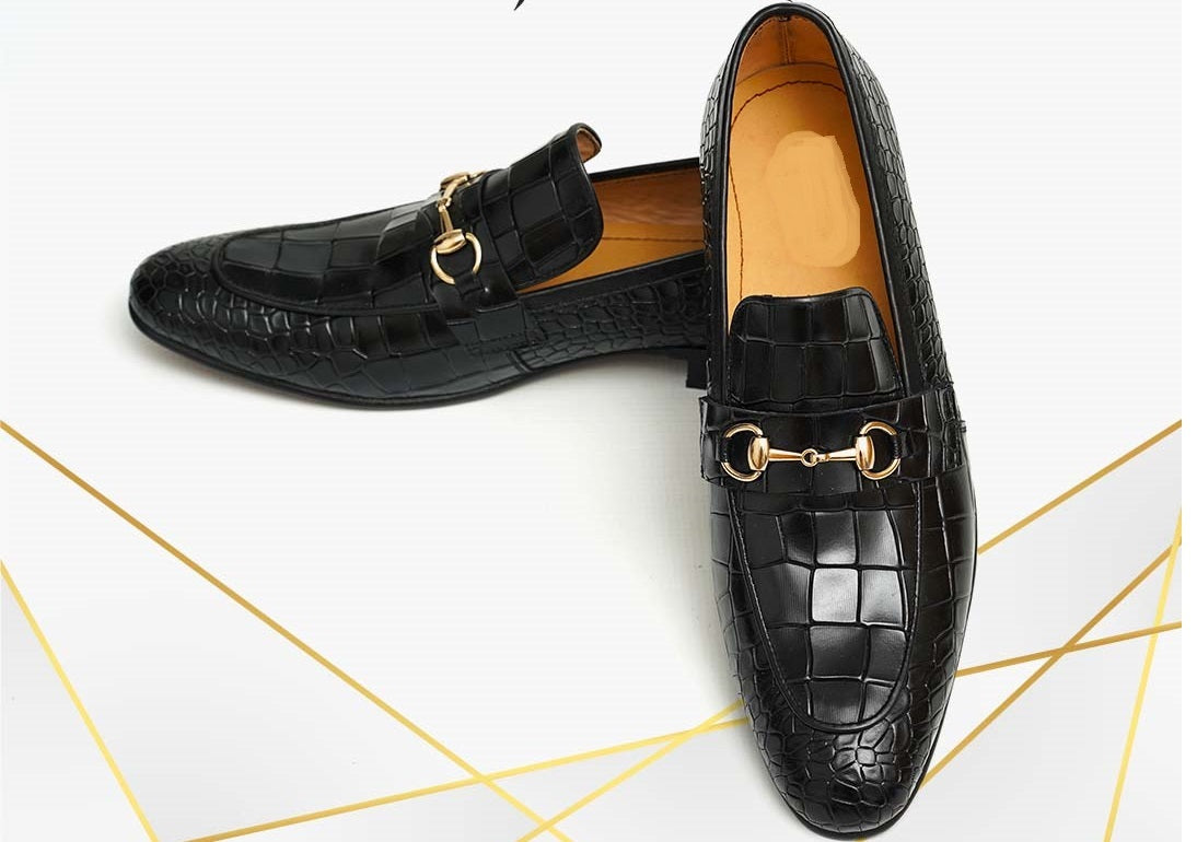 Handmade Mens black crocodile moccasins loafer, Men alligators texture shoe