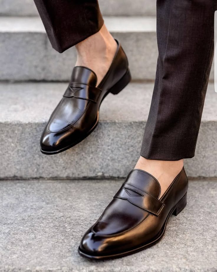 Men's Black Leather Slip-On Loafer Moccasins