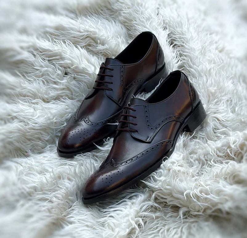 Handmade Mens Black wingtip brogue dress shoes, Men black brogue dress shoe
