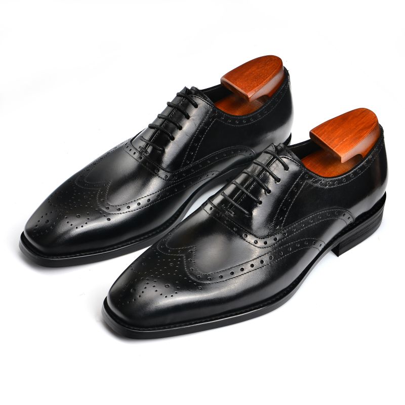 Men's Black Wingtip Dress Shoes, Handmade Leather Brogues
