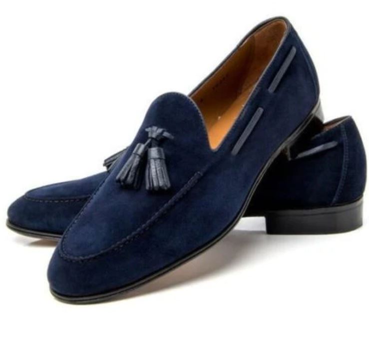 Handmade Mens blue suede moccasins shoes, Men blue suede Tassels loafer