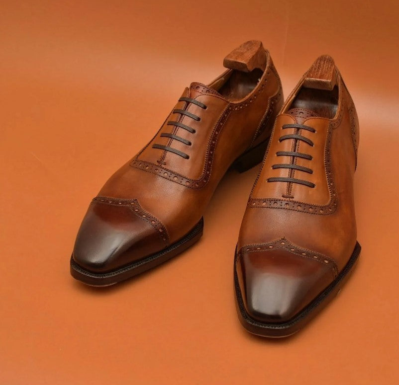 Handmade Mens brown wingtip brogue dress shoes, Men classic style ahoes