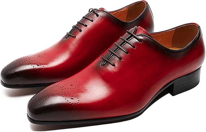 Men's Leather Brogue Dress Shoes - Handmade Red Formal Footwear