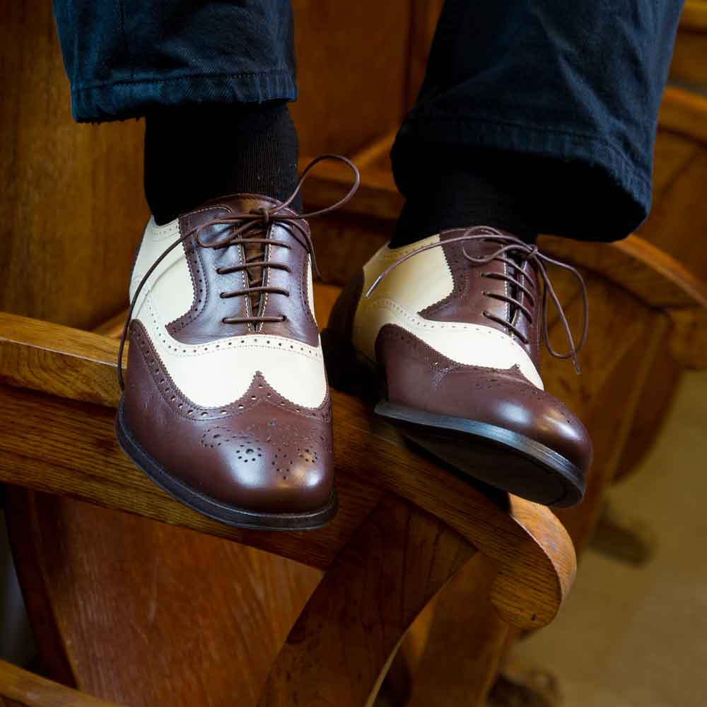 Handmade mens two tone brogue shoes, Mne spectator leather dress shoes