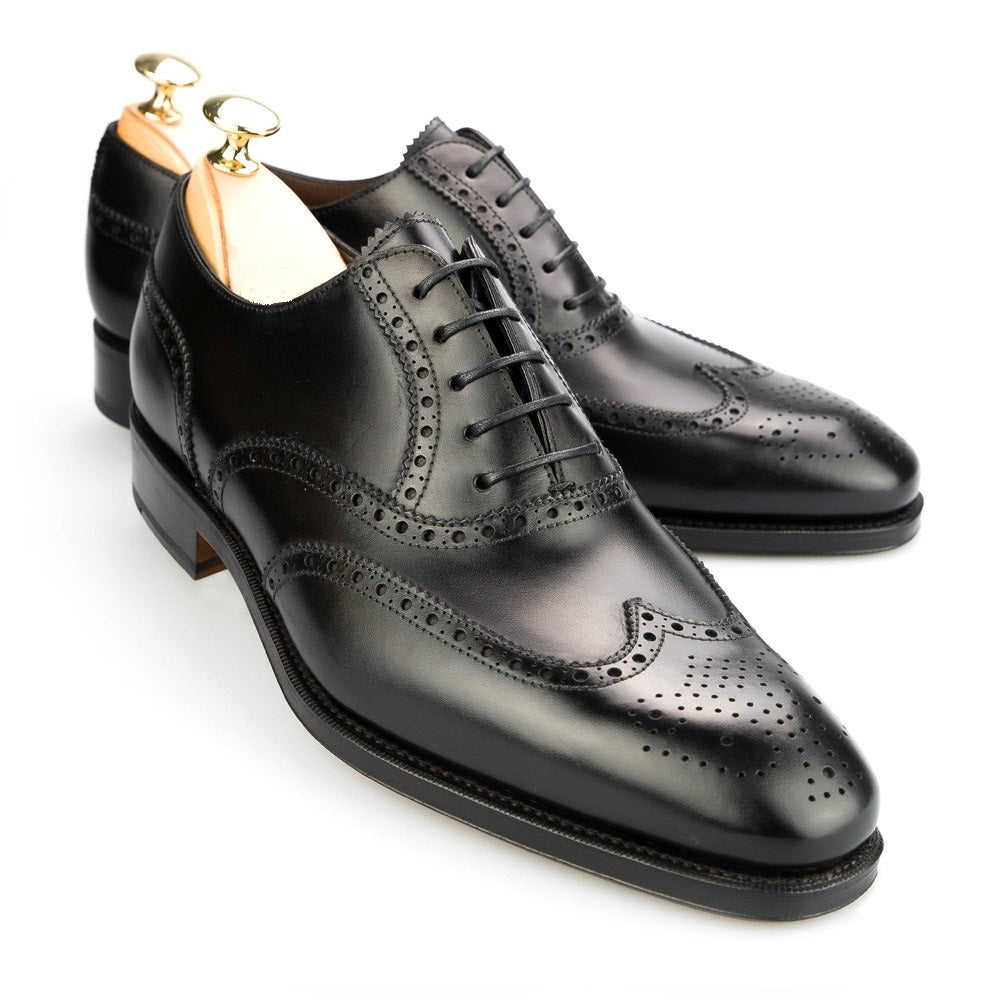 Handmade Men Black wing tip brogue dress shoes, Men leather office shoes