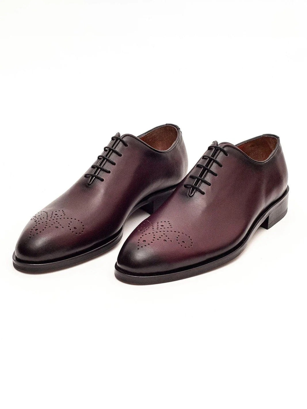 MENS SOLID BURGUNDY WHOLE CUT OXFORD LEATHER DRESS SHOES, MEN OXFORDS SHOES