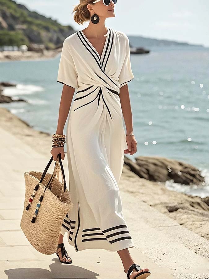 Women'S Loose Striped Print Dress