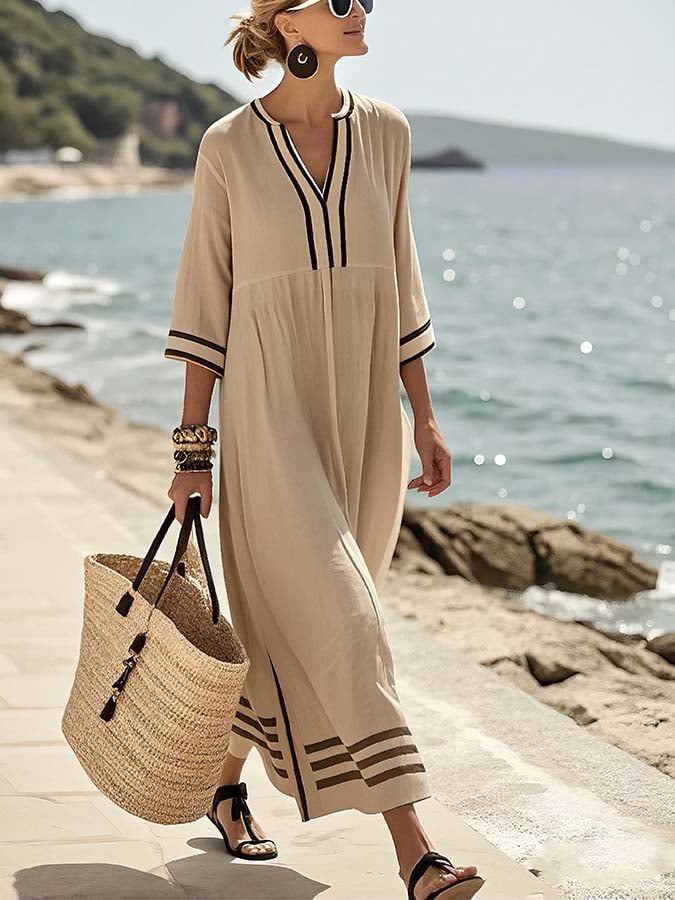 Women'S Loose Striped Print Dress