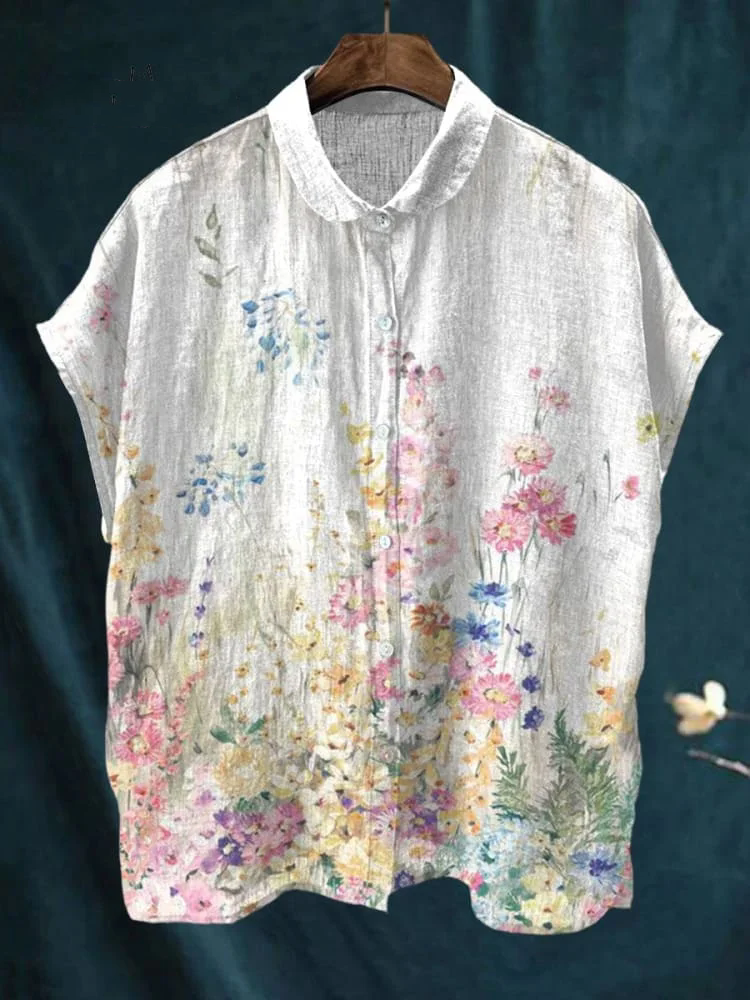 Women's Vintage Botanical Floral Print Casual Cotton Linen Shirt